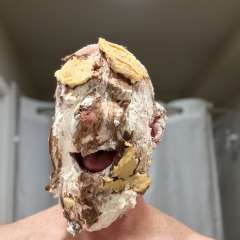 Theoldmanandthepie was surprised by MessyMegan with a big sloppy cream pie to the face